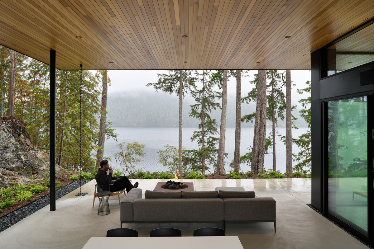 Vertes Retreat 位于加拿大不列颠哥伦比亚省萨基诺湖上方 30 英尺处,是一座豪华度假屋,专为四口之家打造。这座 380 平方米的住宅由WOVEN Architecture and Design 设计,景观设计由Houston Landscapes设计,呈 L 形布局,可轻松融入岩石环境。房屋的两个侧翼顶部是平屋顶,屋顶突出在带户外生活区的环绕式露台上。在家中,鲜明的单色装饰、凉爽的混凝土地板和温暖的木制天花板构成了干净、宽敞的起居区。落地窗和玻璃门为室内增添了自然光线和壮丽景色。